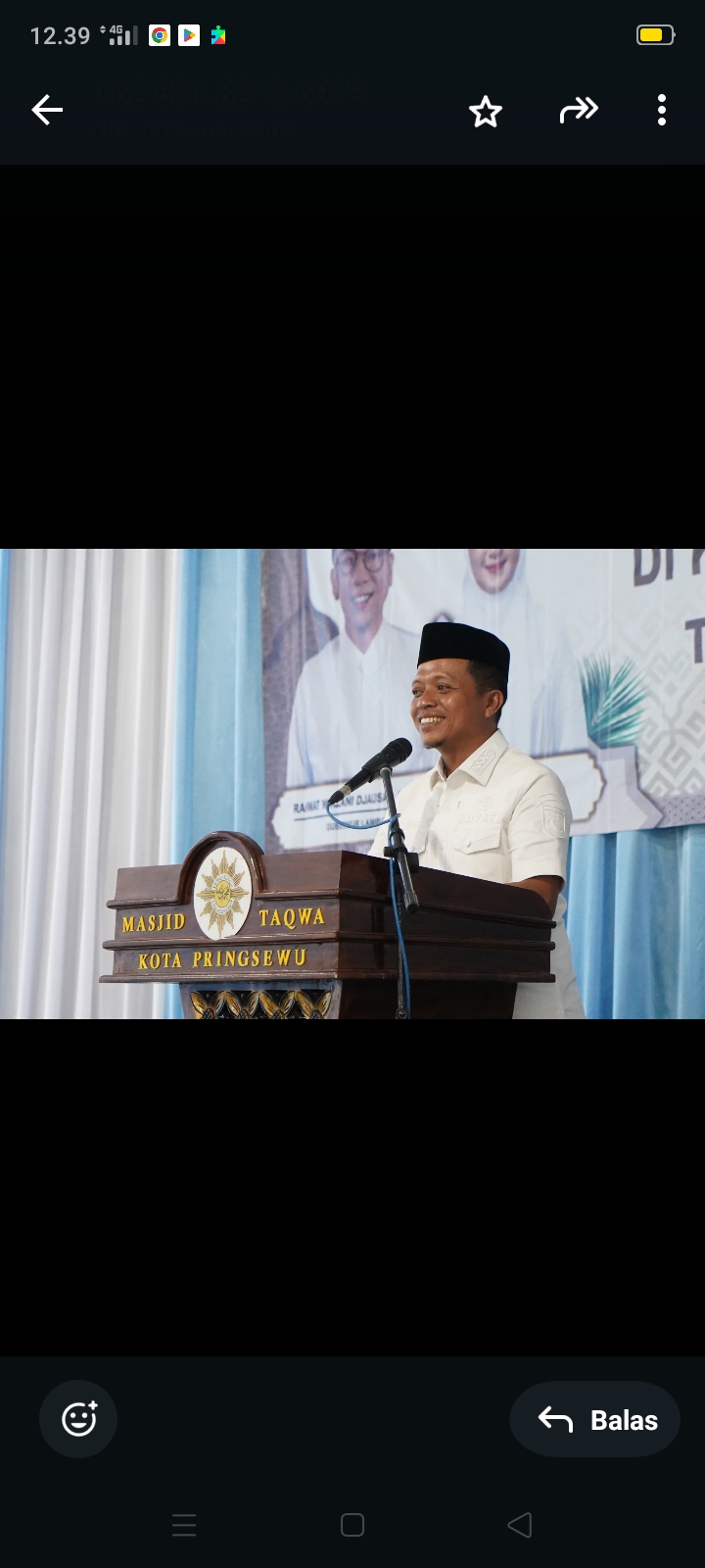 PRINGSEWU – Bupati Pringsewu Riyanto Pamungkas menghadiahkan kitab suci Al-Quran terjemahan Bahasa Lampung kepada Gubernur Lampung Rahmat Mirzani Djausal. Penyerahan dilakukan saat kegiatan Safari Ramadan 1446 H tingkat Provinsi Lampung di Masjid Taqwa Kota Pringsewu, Rabu (12/3/2025).