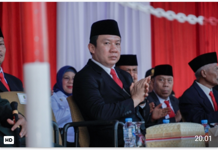 Bandar Lampung — Sekretaris Daerah Provinsi Lampung, Marindo Kurniawan mengikuti Upacara Penurunan Bendera Merah Putih sebagai rangkaian peringatan HUT ke-80 Kemerdekaan Republik Indonesia di Lapangan Korpri komplek Kantor Gubernur Lampung, Minggu (17/08/2025).